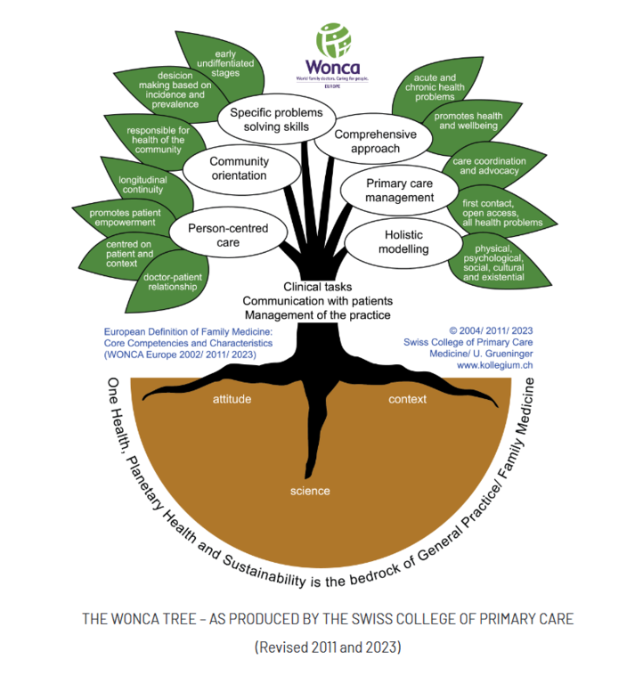 Bilder vom Deutschen Hausärztinnen- und Hausärztetag in Berlin (18.-19.09.25) und der Baum der Wurzeln und Fähigkeiten der Hausarztmedizin (Bildquellen: HHÄV, WONCA-Europe)